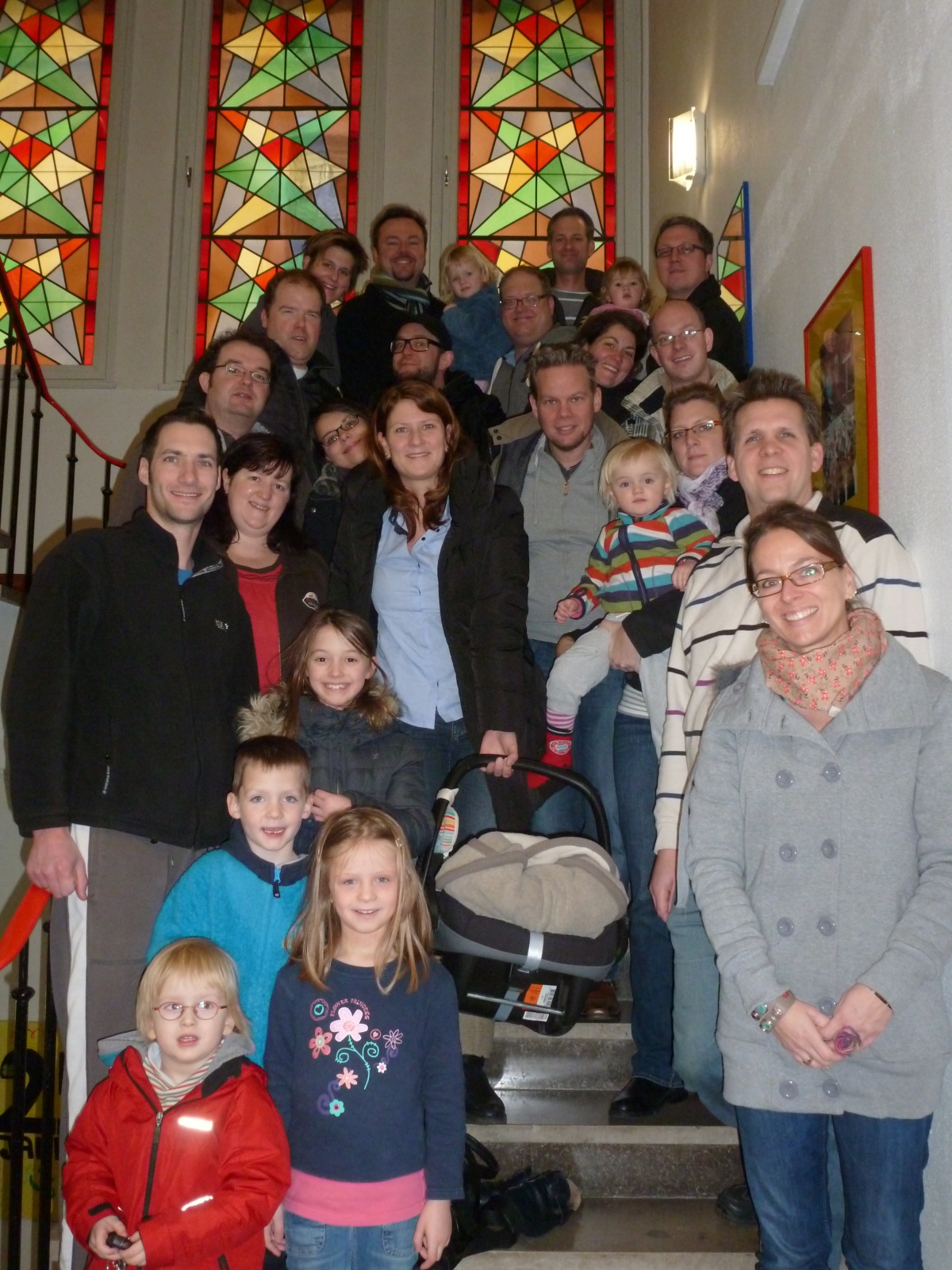 Gruppenbild im Treppenhaus (Download 536kB, 1200x1600) |
