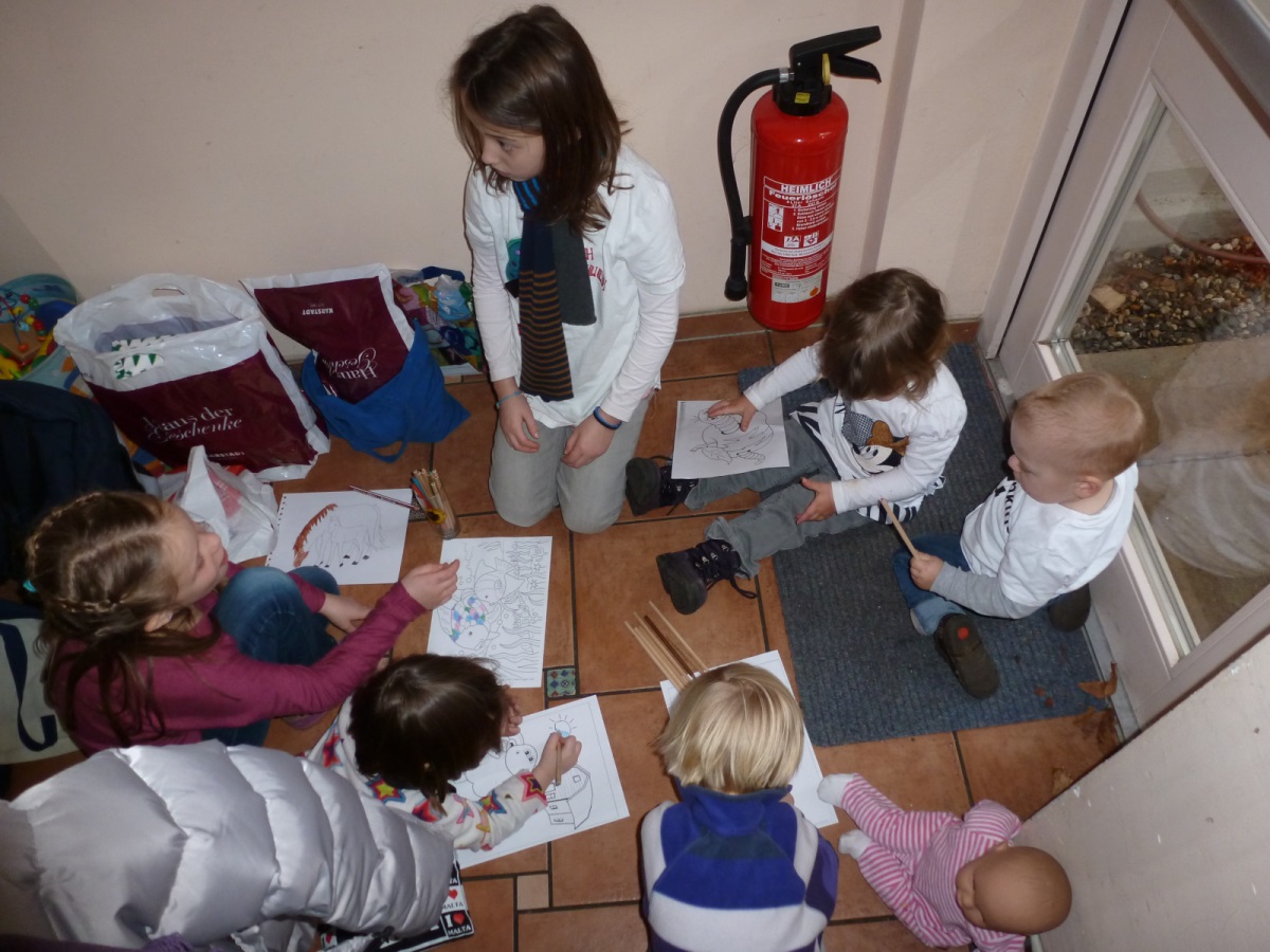 Die Kinder suchten sich eigene Orte zum Spielen: entweder in der Ecke vor dem Notausgang... (Download 288kB, 1200x900) |