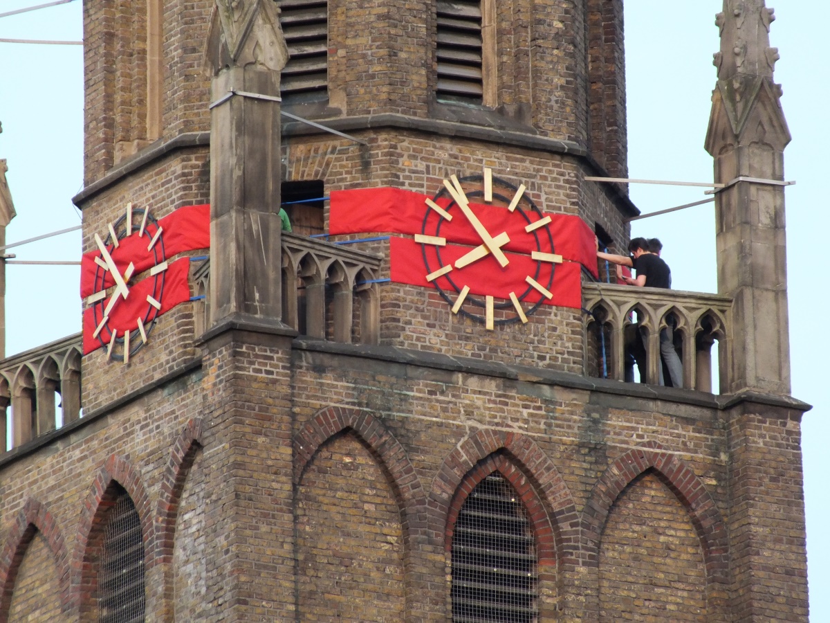 Am 06.05.2013 trafen wir uns um 18:00 Uhr, um die Kirchturmschleife am Kirchturm von St. Dionysius anzubringen. Wir hatten einen Beobachter von unten... (Download 711kB, 1200x900) |