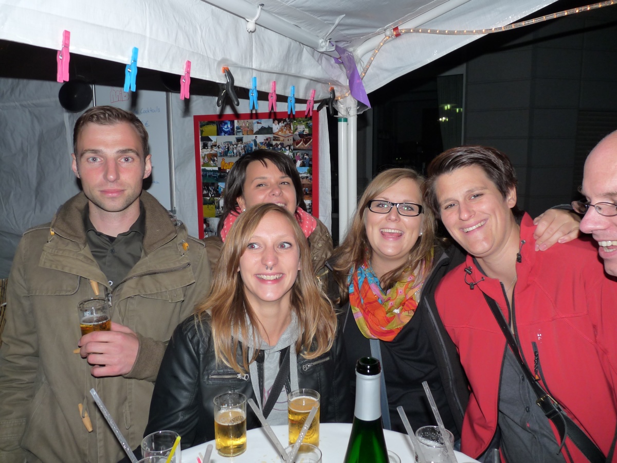 Vor dem Cocktail-Stand hatten wir Stehtische aufgebaut. Auch dort war stets Betrieb - man war halt nahe an der Quelle |